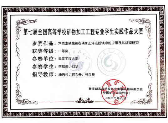 我校学子获全国高等学校矿物加工工程专业学生实践作品大赛一等奖