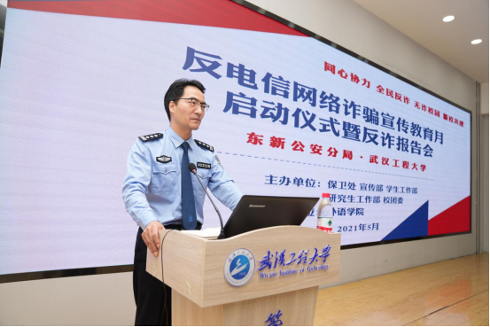 我校联合武汉市公安局东新分局举办反电信网络诈骗宣传教育月启动仪式暨反诈报告会