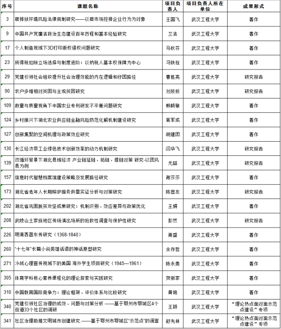 本网讯(通讯员刘畅)近日,湖北省社会科学界联合会公布了2021年湖北省社科基金一般项目(后期资助项目)立项名单,我校获批资助项目23项,其中一般项目20项,“理论热点面对面示范点建设”专项2项,《是这个理》专题节目1项,获批立项数居全省第三位,省属高校第一位。湖北省社科基金作为省委宣传部发布的年度重点省级研究课题,旨在推进和落实《中共中央关于加快构建中国特色哲学社会科学的意见》,加快构建中国特...