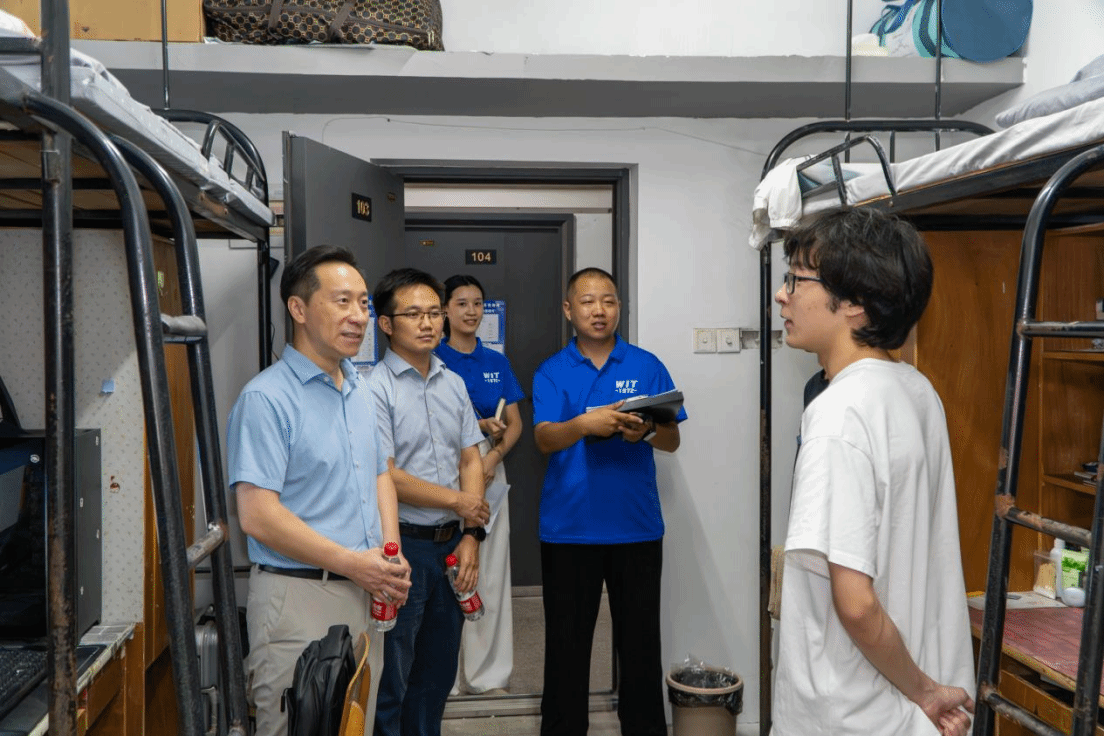 本网讯(通讯员 夏添)9月13日上午,校党委常委、宣传部部长韩高军带队深入武昌校区土建学院学生宿舍慰问2025级新生。“家乡在哪个省份?”“到武汉来是坐火车是开车?”“上大学以前有过集体住宿的经历吗?”这些问题朴实而温暖,瞬间拉近了与新生们的距离,让初入校园的新生感受到了来自学校的热忱关怀。走访过程中,韩高军仔细询问了同学们的高中背景、兴趣爱好等,叮嘱同学们有任何不习惯的地方,或者需要学校帮忙的,随时通过辅导员、...