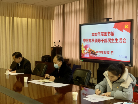 本网讯(通讯员 范玉璟)2021年1月21日上午,图书馆2020年度中层党员领导干部民主生活会在流芳校区图书馆三楼会议室召开。校党委常委、副校长喻发全,组织部孙丽娜、纪委陈天明到会指导。会议由图书馆党总支书记刘少洲主持,副馆长叶仙娥、副馆长刘文波参加会议,馆长刘生鹏、办公室主任幸红霞、党务干事范玉璟列席会议。喻发全对此次民主生活会给予了充分肯定。他指出,会议前期准备非常充分,班子对照检查材料和个人对照检查材料均十分深刻、...